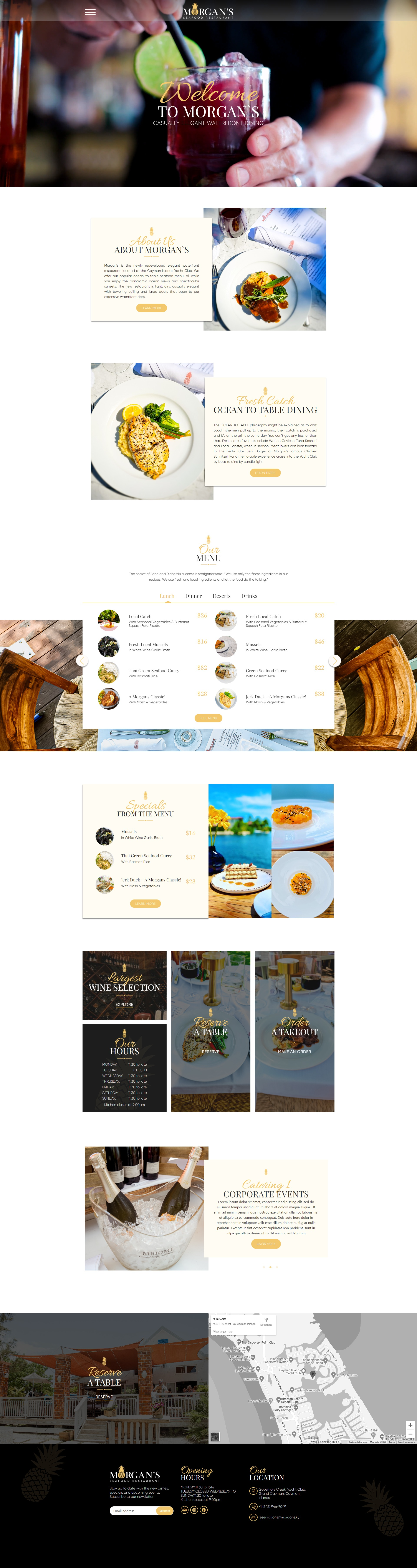 Eyecay designed and built a refined website for Morgan's, one of Grand Cayman's premier dining destinations. The website captures the restaurant's sophisticated atmosphere and Caribbean-inspired cuisine while providing guests with a seamless way to explore menus, make reservations, and learn about private dining and event options.